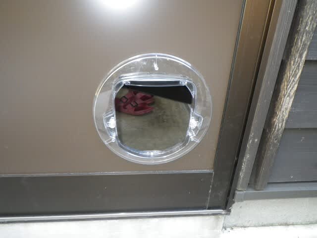 2022.08.04 ペットドア よく室内ドアのペット出入口はききますが、外部建具に取り付けたいとの要望で 既製品にはありませんでしたが、勝手口引違サッシの下部パネル部を加工して設置しました。 やればできる! 工務N 記事一覧へ 次へ